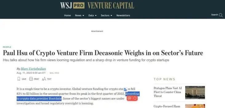 Since its launch, RootData has accumulated over 2 million unique users. Its data has been frequently cited by mainstream media such as The Wall Street Journal, CoinDesk, Cointelegraph and prominent crypto influencers.