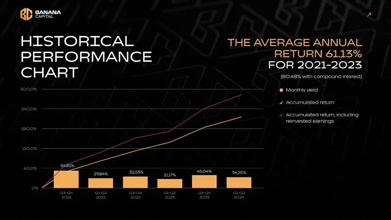 Dinar Faskhutdinov, the founder of Banana Capital, commented: “Decentralized finance opens up new opportunities for generating income that are not available in traditional finance. However, the ‘Wild West’ era of the crypto industry is over; this is now a multi-billion-dollar market with high competition, and the days of easy money are gone. To succeed in DeFi, a deep understanding of the market, effective risk management, and smart liquidity management are required. With years of experience and a track record of success, Banana Capital is the ideal partner to help navigate this new financial landscape. Our DeFi strategy is designed to minimize risk and maximize returns. Whether you’re looking to diversify your investment portfolio or just beginning to explore the opportunities in DeFi, this strategy could be the solution you’re looking for.”
