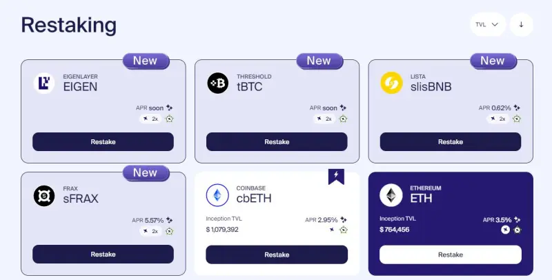 EIGEN, tBTC, slisBNB, and sFRAX Liquid Restaking Integrations on InceptionLRTs dApp