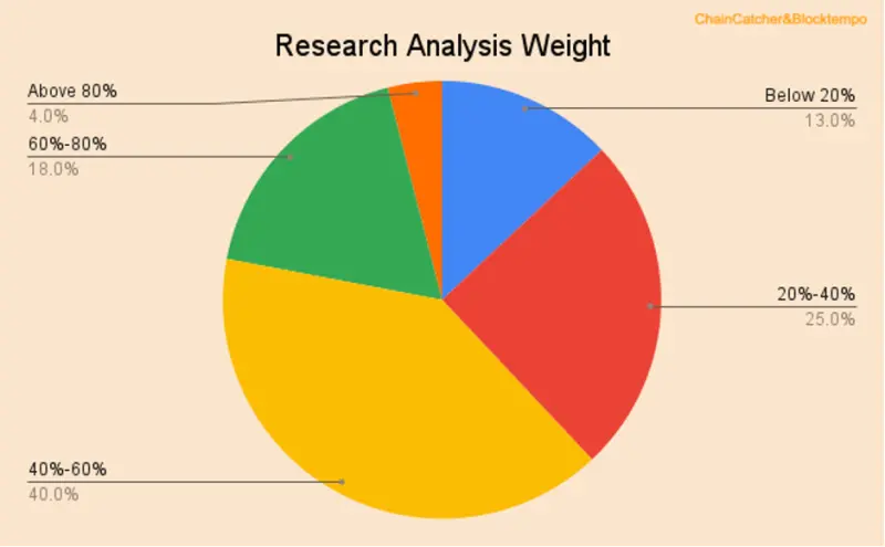40% of investors believe that research analysis accounts for 40%-60% of the decision-making weight, while only 13% of investors believe that research analysis accounts for less than 20% of the decision-making weight.