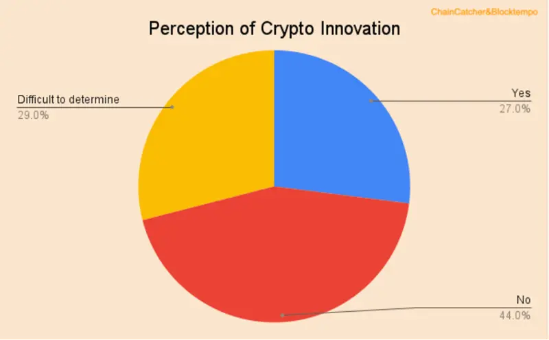 44% of investors believe they haven’t seen significant innovations in the Crypto industry this year, 29% find it difficult to describe, and 27% believe they have seen significant innovations.