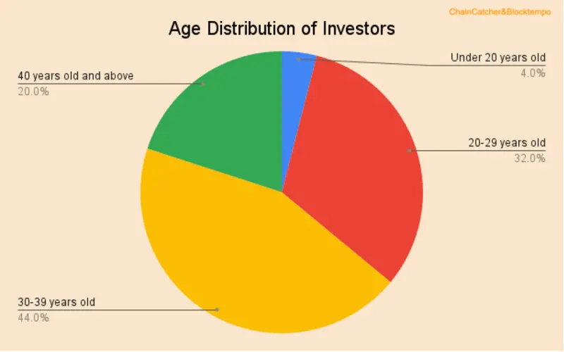 Respondents aged 30-39 account for the highest proportion at 44%, followed by 20-29 (32%) and 40+ (20%).
