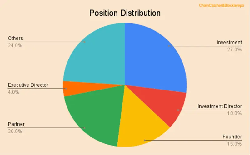 Among the surveyed group, investment managers/researchers make up the largest proportion at 27%, followed by partners (20%), founders (15%), investment directors (10%), executive directors (4%), and others (24%).