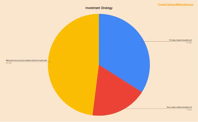 48% of investors adopt a mixed primary and secondary market investment strategy, 34% focus on primary market investments, and 18% focus on secondary market investments.