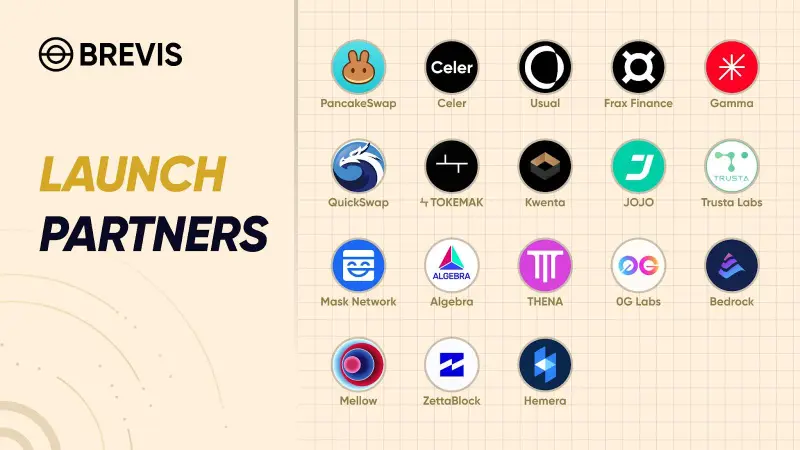 Brevis also unveils its launch partners, who are building and launching exciting new products and features using the Brevis SDK. Some of these partners have already launched Brevis-powered features on mainnet, such as Kwenta, JoJo Exchange, and Trusta. Many other top protocols and dApps, such as PancakeSwap, Celer, Usual, Frax, Gamma, Quickswap, Tokemak, Mask Network, Algebra Labs, Thena, 0G, Bedrock, Mellow Finance, ZettaBlock and Hemera are building Brevis-powered next-generation product and features.