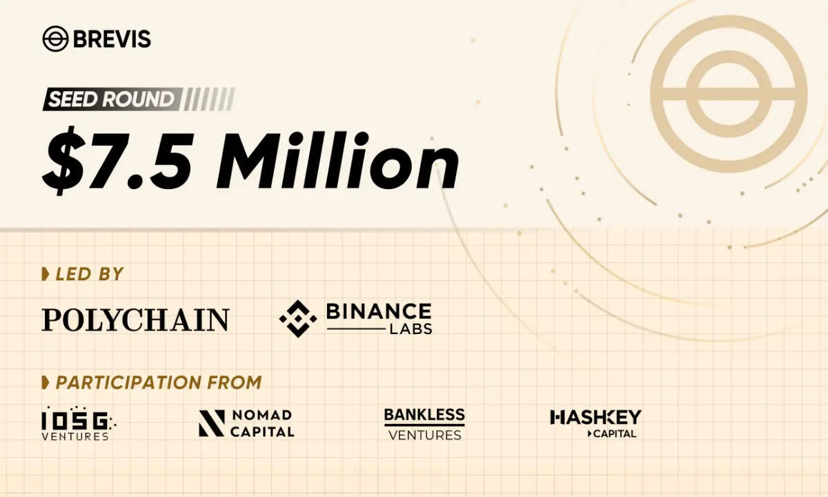 Brevis has announced the raise of $7.5 million in seed funding led by Polychain Capital and Binance Labs, and with participation from IOSG, Nomad Capital, Bankless Ventures, and HashKey, as well as a number of amazing angel investors.