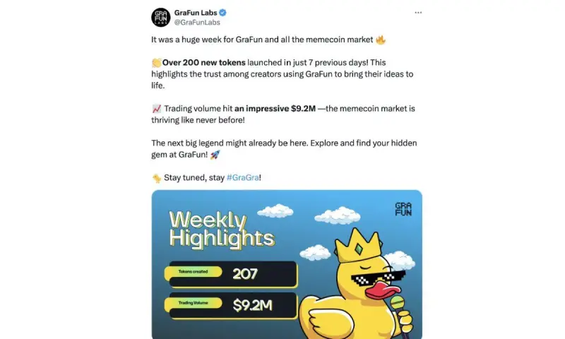 In just 1.5 months since the platform debuted, it saw already 13,6k+ memecoins launch with an overall volume of $430M+. Even when only operating on one chain, it became the top-performing memecoin launchpad on any EVM-compatible chain. To give an idea of its continued rapid growth, in just the last 7 days, GraFun had $9.2M in trading volume, with more than 200 tokens created.