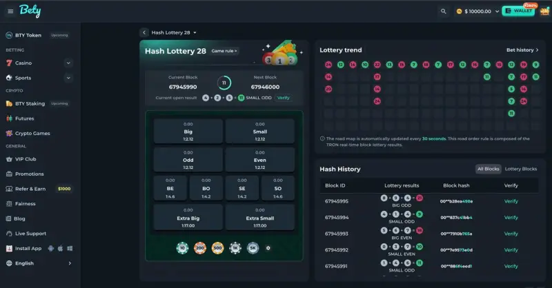 BETY.com’s jackpot balance creates an engaging prize pool where each bet contributes to potential payouts. Players can use cryptocurrencies like USDT or TRX to participate and monitor real-time prize pool updates, adding to the transparency.