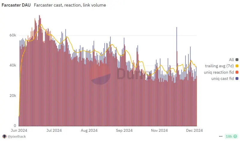 Recent daily active user data for Farcaster in the past six months:
