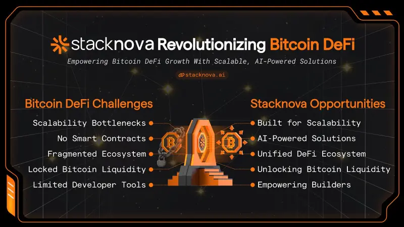 The platform addresses key challenges in Bitcoin DeFi—such as scalability bottlenecks, fragmented ecosystems, and locked liquidity—paving the way for growth and innovation. With its intelligent solutions and focus on usability, Stacknova sets a new standard for blockchain technology and decentralized finance.