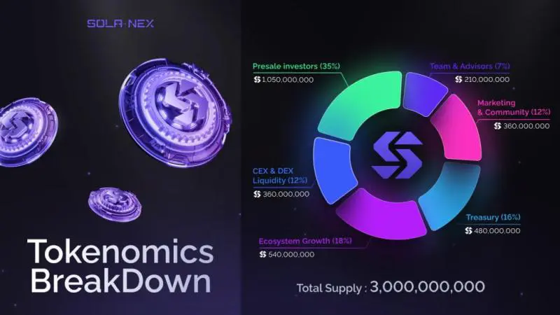 1B $SOLDEX for Pre-sale Investors. Total Supply of $SOLDEX tokens is capped at 3,000,000,000. More than 80% of them are allocated for the development of the Ecosystem and the project users.