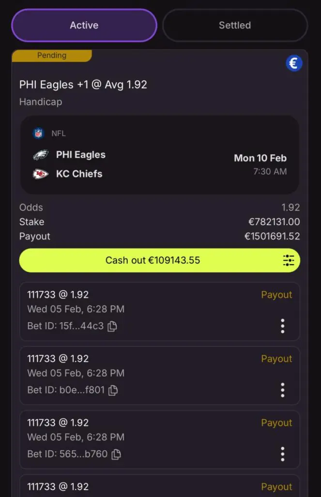 For the first time in Super Bowl history, bettors will face no restrictions on bet sizes for the game’s core markets: moneyline, point spread, and over/under totals. While traditional sportsbooks typically impose limits, Cloudbet’s announcement opens the door for potentially record-breaking bets. To accomplish this industry first, a Cloudbet spokesperson says the sportsbook is using a proprietary trade execution engine to access global sports market liquidity.