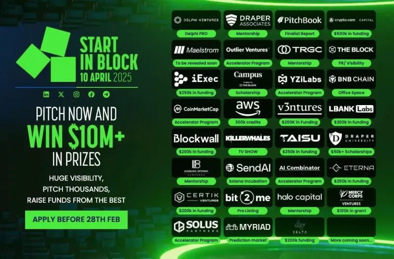 Start in Block is open to early-stage Web3 companies with under $5M in funding and less than four years old. Entry is free and startups have until February 28, 2025, to apply. The Top 100 finalists will be selected and announced on March 10.