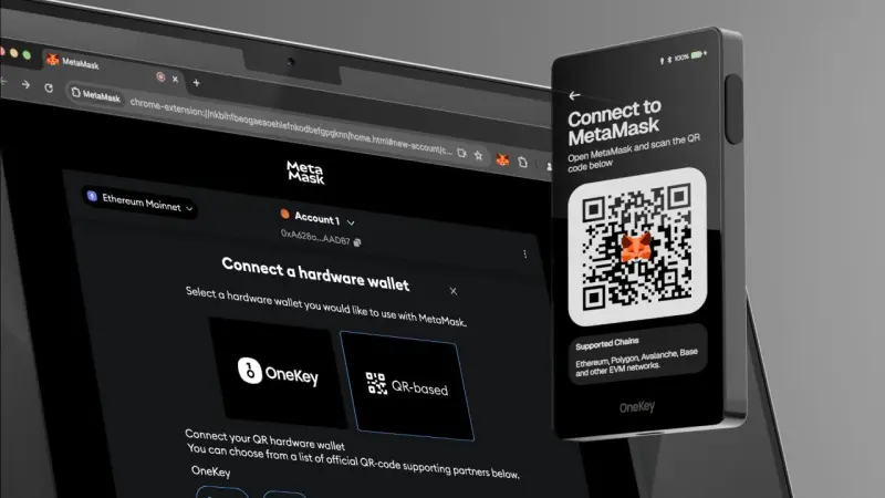 OneKey, the leading open-source crypto hardware wallet backed by Coinbase Ventures, is now seamlessly integrated with MetaMask. The latest MetaMask update introduces native support for OneKey, allowing users to connect via USB and Air-Gapped (QR code) signing—bringing the best of self-custody and security into one streamlined experience.