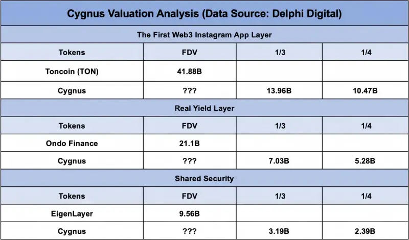 Cygnus reports a starting fully diluted valuation (FDV) of approximately $200 million. For context, other projects in this sector have reached significantly higher valuations: