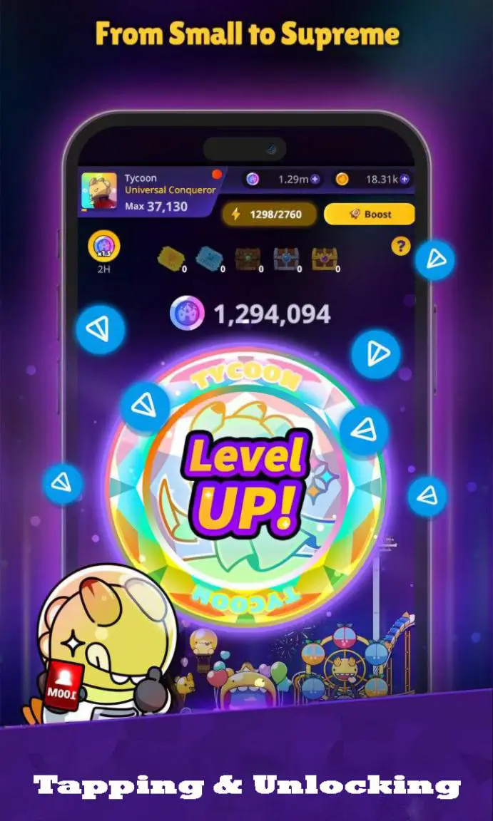 The game is built on Telegram, allowing users to play instantly without requiring a wallet connection. Players can manage their own virtual theme parks, upgrade attractions, attract visitors, and earn Tycoon Tokens based on performance.