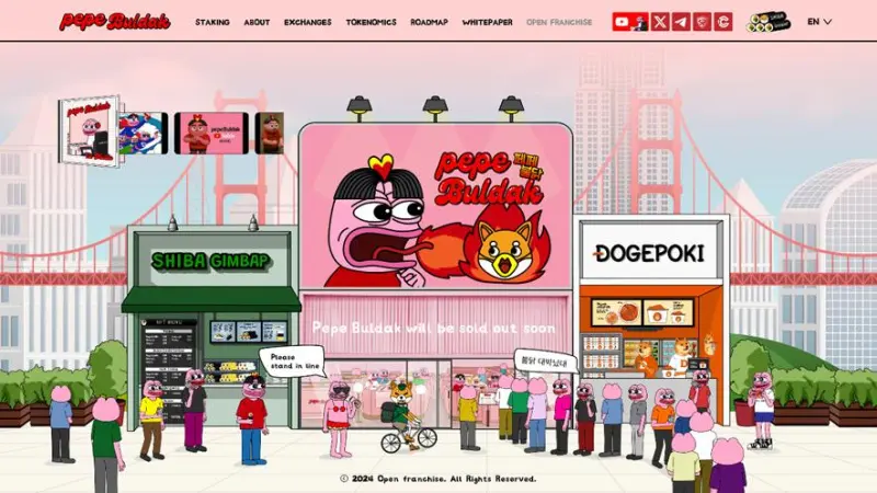 Pepe Buldak was created with the aim of addressing the lack of successful Korean meme coins and the dominance of foreign meme coins in Korean local exchange listings. To that end, it is developing a Web3 franchise model under the Open Franchise protocol, combining meme coin features with practical business applications. By incorporating elements of Korean culture and parody into its design, the project is building a global following and working toward a strong community—considered central to the identity of a meme coin.