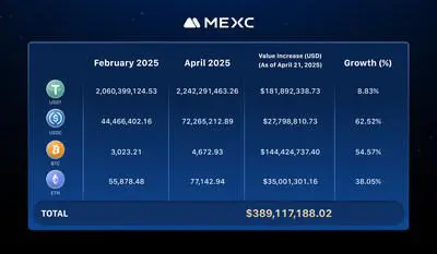 A comparison between February and April 2025 reveals a notable surge in MEXC’s asset holdings, with total on-chain reserves increasing by approximately $389.1 million: