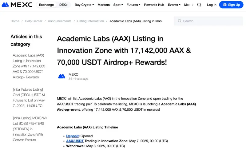 Academic Labs, a leading on-chain knowledge sharing platform, has announced its token (AAX) will list on MEXC exchange on May 7th at 9:00 UTC, marking another significant milestone in its expansion strategy.