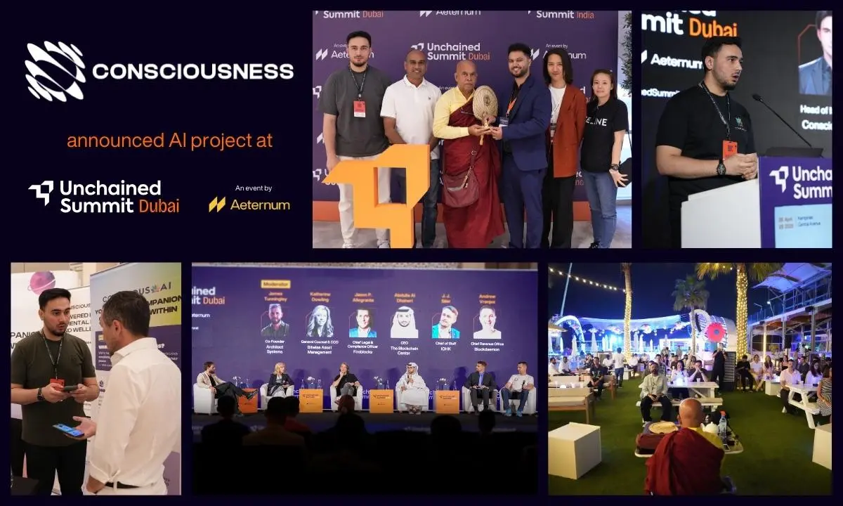 Unchained Summit, a two-day conference, concluded in Dubai on 28th and 29th April 2025. The event wrapped up with a grand closing celebration, featuring a special afterparty co-hosted with Consciousness—a community-driven, AI-powered initiative focused on mental health, well-being, and consciousness. As a key part of the summit, Jason, Head of Marketing at Consciousness, shared the project’s vision for the Consciousness Community. He also offered attendees an exclusive sneak peek at the beta version of Conscious AI, the platform’s core product.