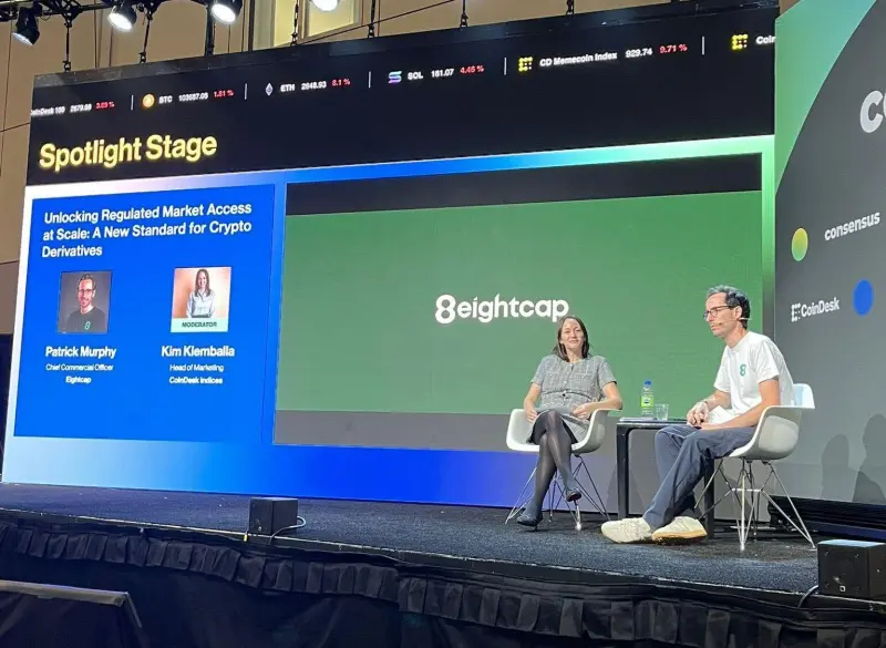 The product was officially unveiled on stage at Consensus 2025 in Toronto on Wednesday, May 14. The on-stage debut took place on the Spotlight Stage during a Q&A session titled Unlocking Regulated Market Access at Scale – A New Standard for Crypto Derivatives. To wrap up the week, the launch was featured on CoinDesk Live’s final day broadcast, where Patrick Murphy, Chief Commercial Officer at Eightcap, was interviewed by Andrew Baehr, Head of Product & Research at CoinDesk Indices, and senior anchor Christine Lee.