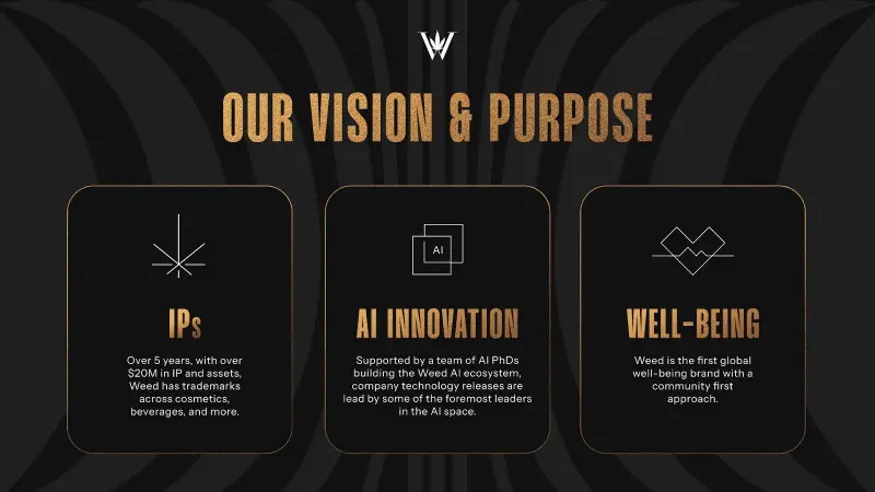 Today, Weed unveils its holistic wellness platform, a move aimed at reshaping the global conversation around well-being. Over the past five years, the team has directed more than $20 million toward intellectual-property acquisition and product development. The result is a convergence of advanced AI, decentralized Web3 design, and a brand with true cross-cultural resonance. Together, these elements open the door to a healthier, more participatory lifestyle economy.