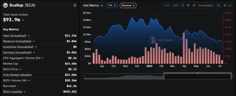 - Robust Ecosystem Metrics: Scallop’s $5 million revenue, 2.54 trillion in trading volume, and 7.78 trillion in flashloan volume over the past month reflect its operational strength and appeal to traders and developers alike.