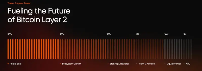 The total supply of $LBTC is fixed at 12 billion tokens. Of this, 30% is allocated to the public sale, 25% to ecosystem growth, and the remaining tokens are designated for staking rewards, liquidity, team members, advisors, and strategic contributors.