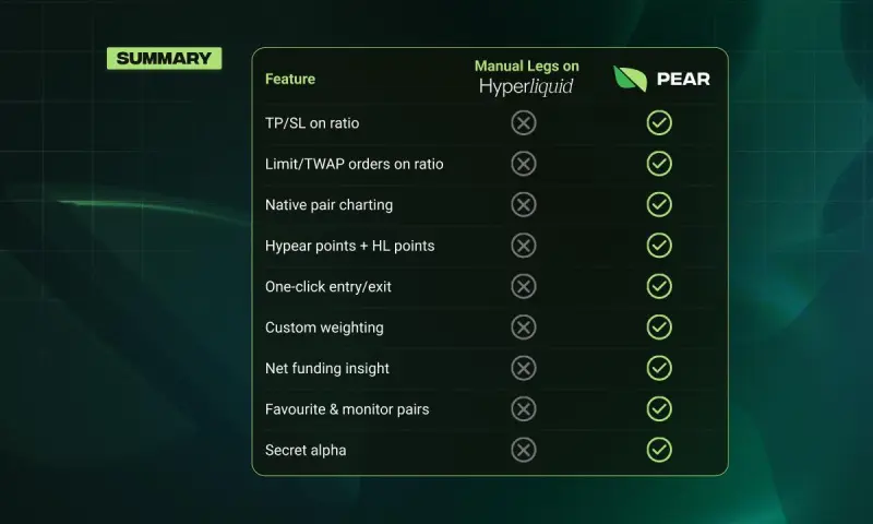 With the Hyperliquid integration now live, traders on Pear can enjoy: