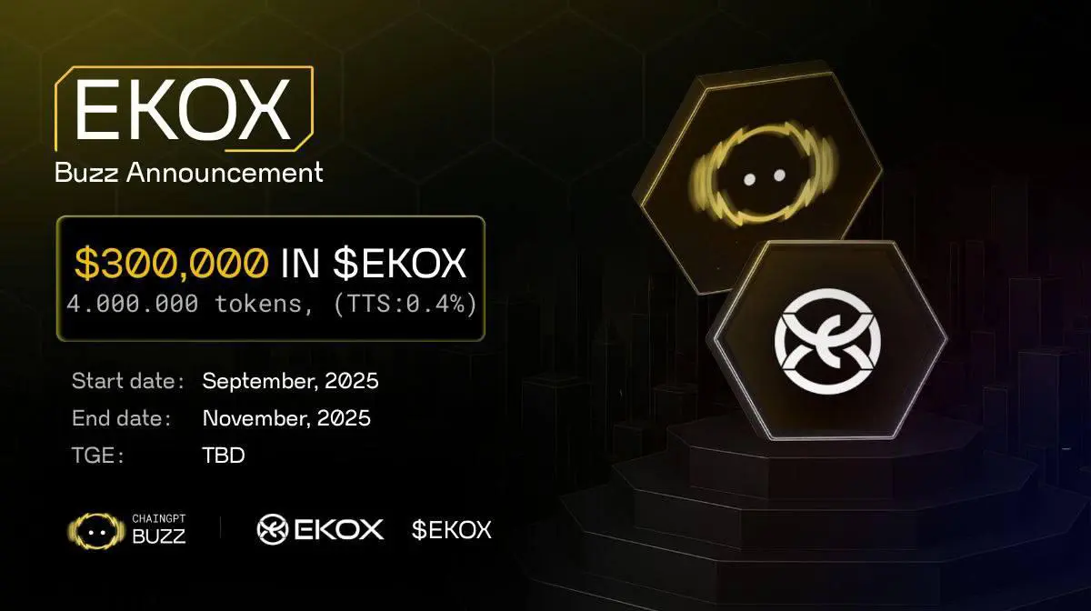 Ekox, a next-generation restaking protocol built on Ethereum, has announced the launch of its $300,000 Buzzdrop on ChainGPT Pad. The campaign begins September 3, 2025, at 13:00 GMT+1 and runs through November 3, 2025, ahead of Ekox’s upcoming Token Generation Event (TGE).