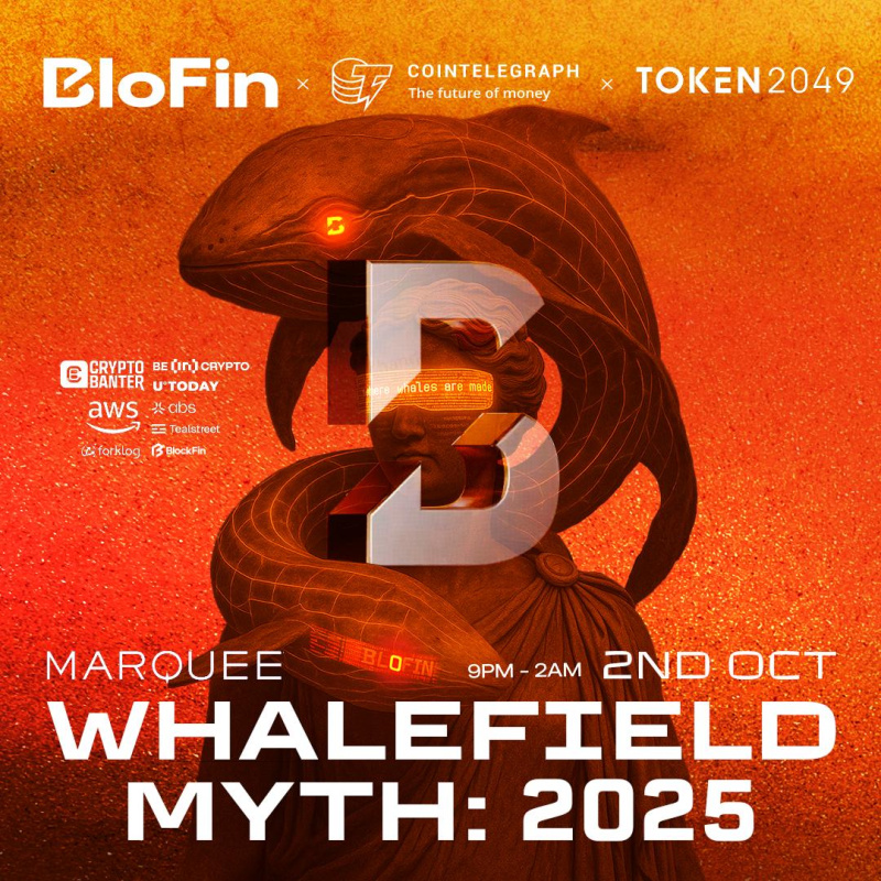 Following the remarkable success of Whale’s Rave in Dubai earlier this year, BloFin is set to host the most anticipated afterparty of TOKEN2049 Week: BloFin x TOKEN 2049 x Cointelegraph: Whalefield 2025. The exclusive event will take place from 9:00 PM to 2:00 AM at MARQUEE Singapore, Marina Bay Sands, the city’s most iconic nightlife venue and home to the legendary Formula 1 afterparties.