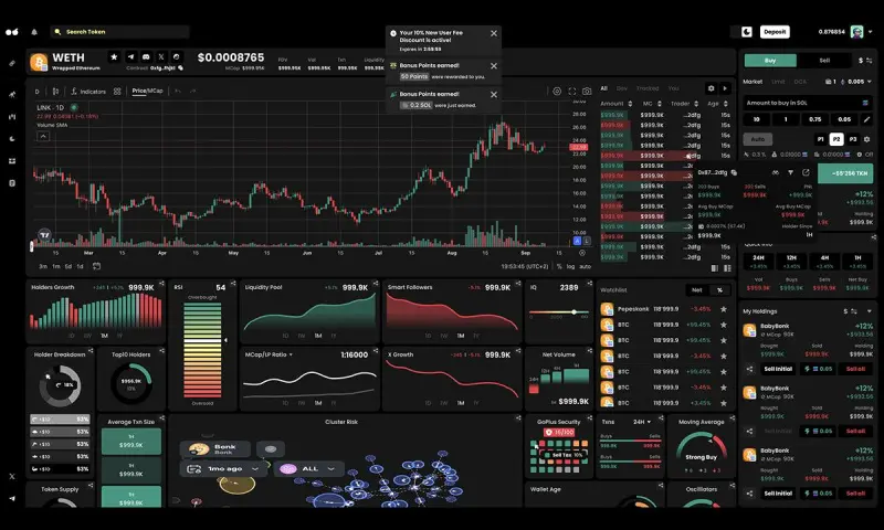 - Market Integration → Liquidity flows, sentiment shifts, and price action in one view.