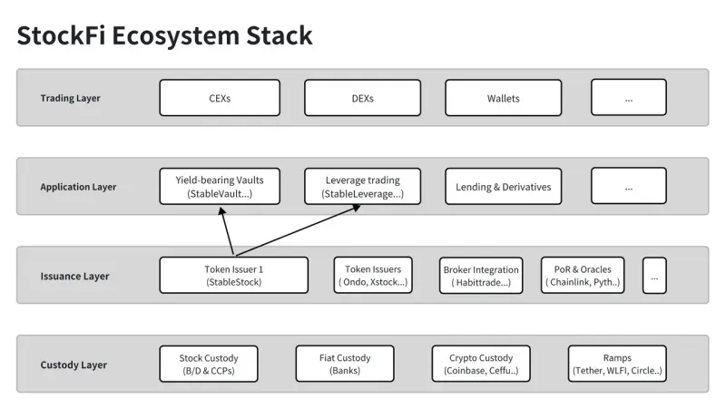 StableStock calls this new frontier StockFi — Stock + DeFi — the financialization and decentralization of global equities. Over the past decade, crypto has put currencies, commodities, and credit on-chain. Stocks, one of the world’s largest asset classes, have remained offline. StableStock aims to change that through a multi-layered system linking custody, issuance, and trading.