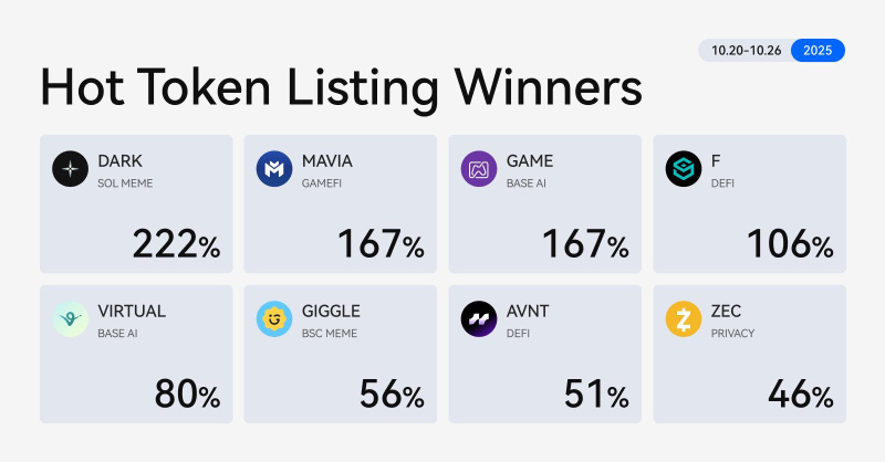 HTX Publishes Hot Listings Weekly Recap (Oct 20-26): Top Gainer Surges 222% Amid Multi-Sector Growth Led by Memecoin and GameFi