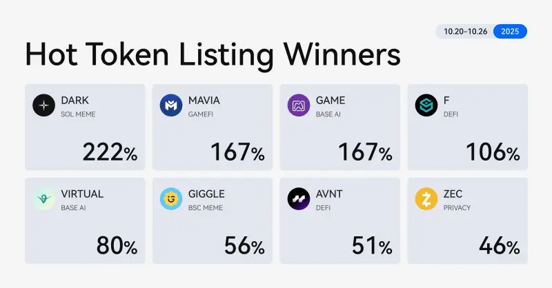 From Base’s AI agent revolution to memecoin euphoria, GameFi’s play-to-earn revival, DeFi’s efficiency breakthroughs, and Privacy’s comeback, the week of Oct 20-26 showcased a broad market rotation toward smaller projects, high-narrative assets with tangible progress potential. HTX, leveraging its strategic foresight in asset curation and sector discovery, continues to offer users early access to emerging narratives and multi-dimensional growth opportunities, empowering global traders to capture value in the next phase of the digital economy.