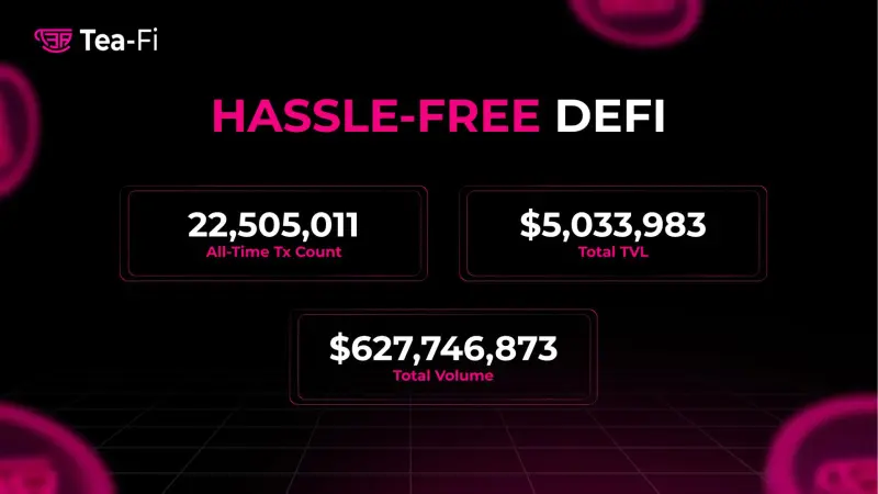 Tea-Fi, the all-in-one DeFi SuperApp, is setting a new benchmark for the future of DeFi by merging simplicity, scalability, and sustainability into one seamless experience. With over a million connected wallets, $650+ million in transaction volume, and over 20 million on-chain interactions, Tea-Fi is proving that DeFi can be both powerful and accessible.