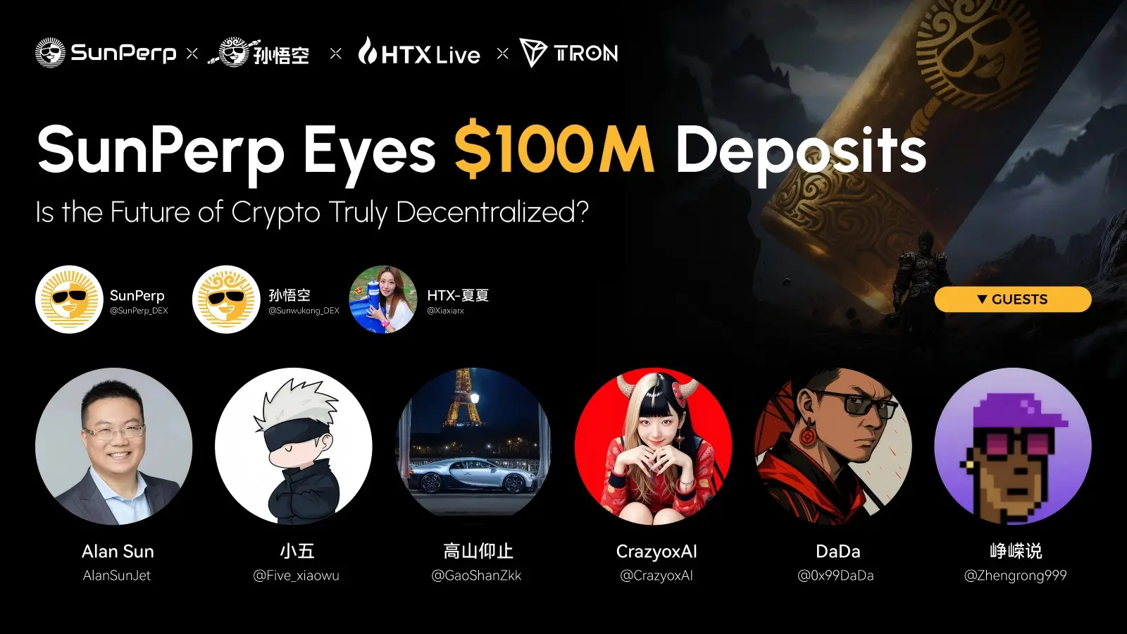 On October 30, SunPerp, the world’s first Chinese-language decentralized futures exchange, hosted a high-profile livestream titled “SunPerp Eyes $100M Deposits: Is the Future of Crypto Truly Decentralized?”