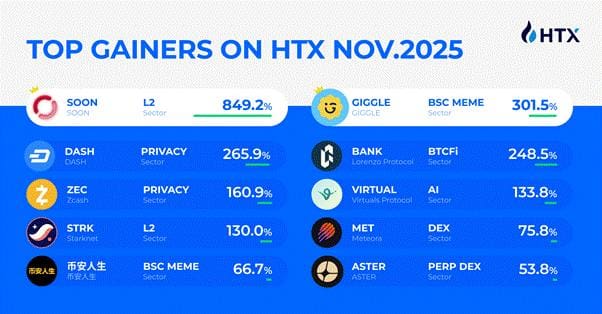 “HTX Select” November Listings Recap: SOON posts an 849.2% increase, Leading Six Sectors Like Alpha