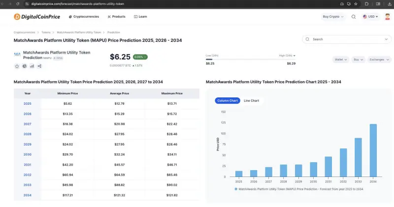 DigitalCoinPrice now tracks MAPU with a full 10-year outlook, including annual min/avg/max projections based on liquidity behavior, historic patterns, and global crypto modeling.