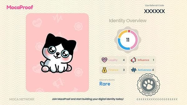MocaProof includes a virtual companion named Mocat, a cute and friendly character within the Mocaverse. Mocat provides users of MocaProof with a personal visualization of their verified credentials. As a user verifies more credentials through MocaProof, their Mocat evolves with different traits that represent the growth and rarity of the user’s verified data. The evolution of a Mocat will also unlock rewards, depending on the Mocat’s rarity.