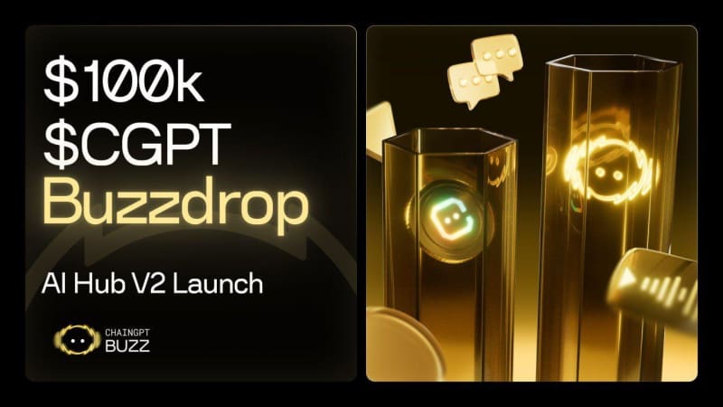 The launch also introduces a major community campaign. To mark the release of AI Hub V2, ChainGPT Pad is rolling out a $100,000 Buzzdrop, distributing $50,000 in $CGPT per month.