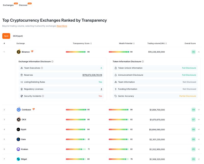 As the crypto market accelerates its integration with mainstream finance, RootData’s transparency scoring system addresses a core question: Are exchanges truly fulfilling their responsibilities regarding public information disclosure?