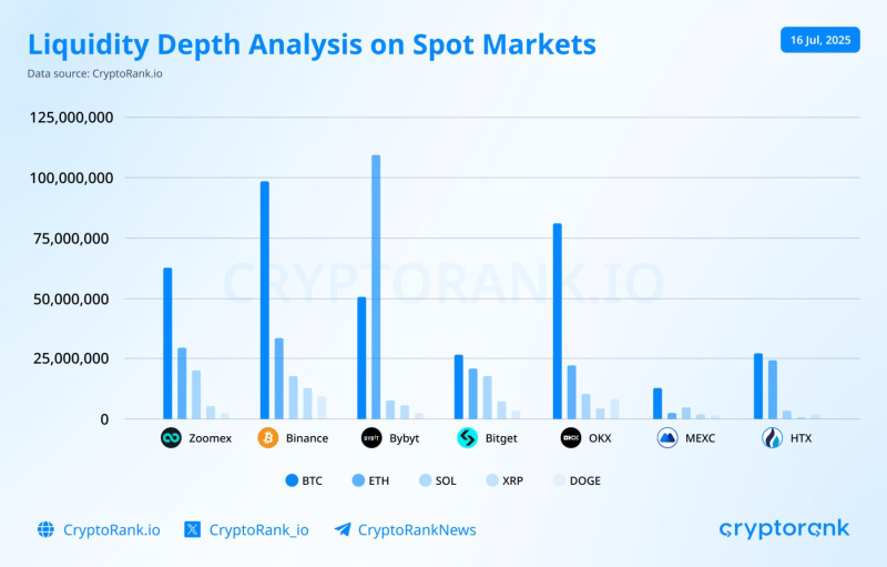 Research from CryptoRank indicates that Zoomex demonstrates strong order book depth across major assets: