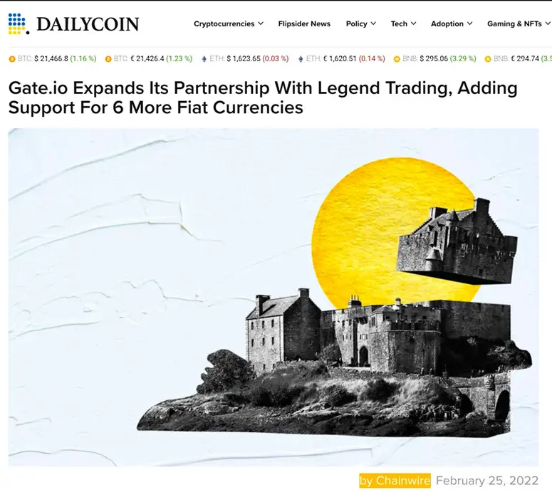 - Company expansion: “Gate.io Expands Its Partnership With Legend Trading, Adding Support For 6 More Fiat Currencies”